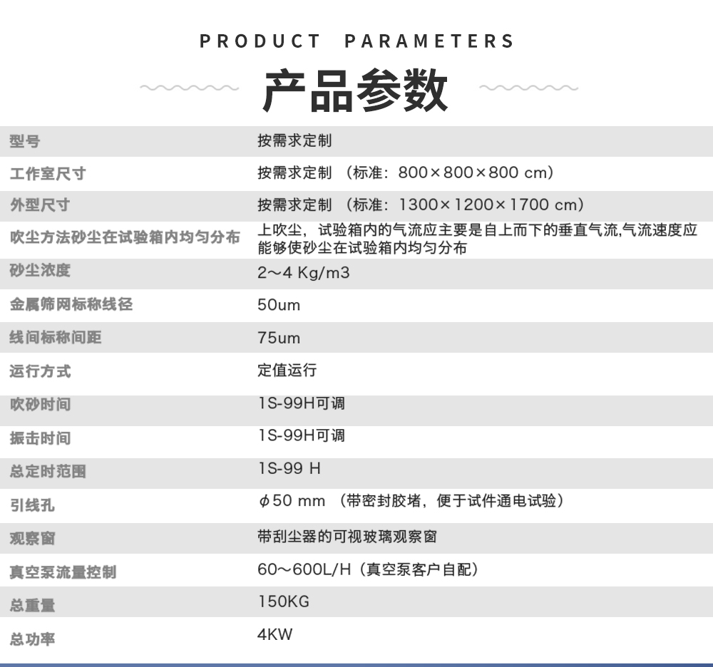 用途:防塵試驗箱適用于防護等級 (IP code), GB/T 4942.2-93(低壓設備防護等級),GB 7000.1(燈具防護等級),DIN40050和IP5K0等校準設計制造。SC-015應用于LED燈具和其它照明產品對IP5X和IP6X防塵等級測試。